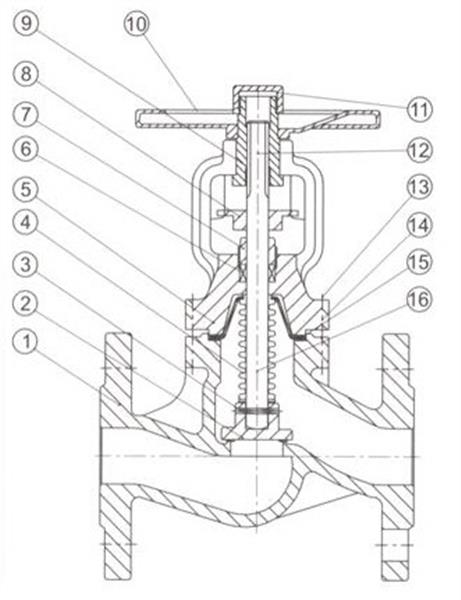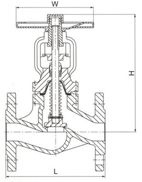 WJ41H波紋管截止閥內部采用波紋管結構,不銹鋼的波紋管下端焊接在閥桿上,以防止工藝流體浸蝕閥桿。另一端置于閥體和閥蓋之間構成靜密封。采用雙重的密封設計若波紋管失效閥桿填料也會避免泄漏,波紋管焊于閥桿保持穩定的運行性能,避免由于閥塞振動引起閥桿振動。