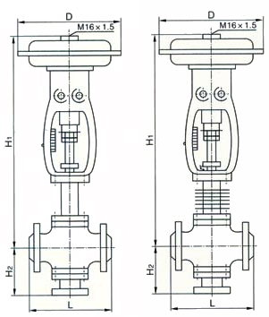 ZMAQ氣動薄膜三通調節閥可配附件:定位器、手輪機構、空氣過濾減壓器等。