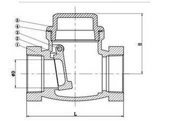 H14W-16P不銹鋼絲口臥式止回閥結構圖: